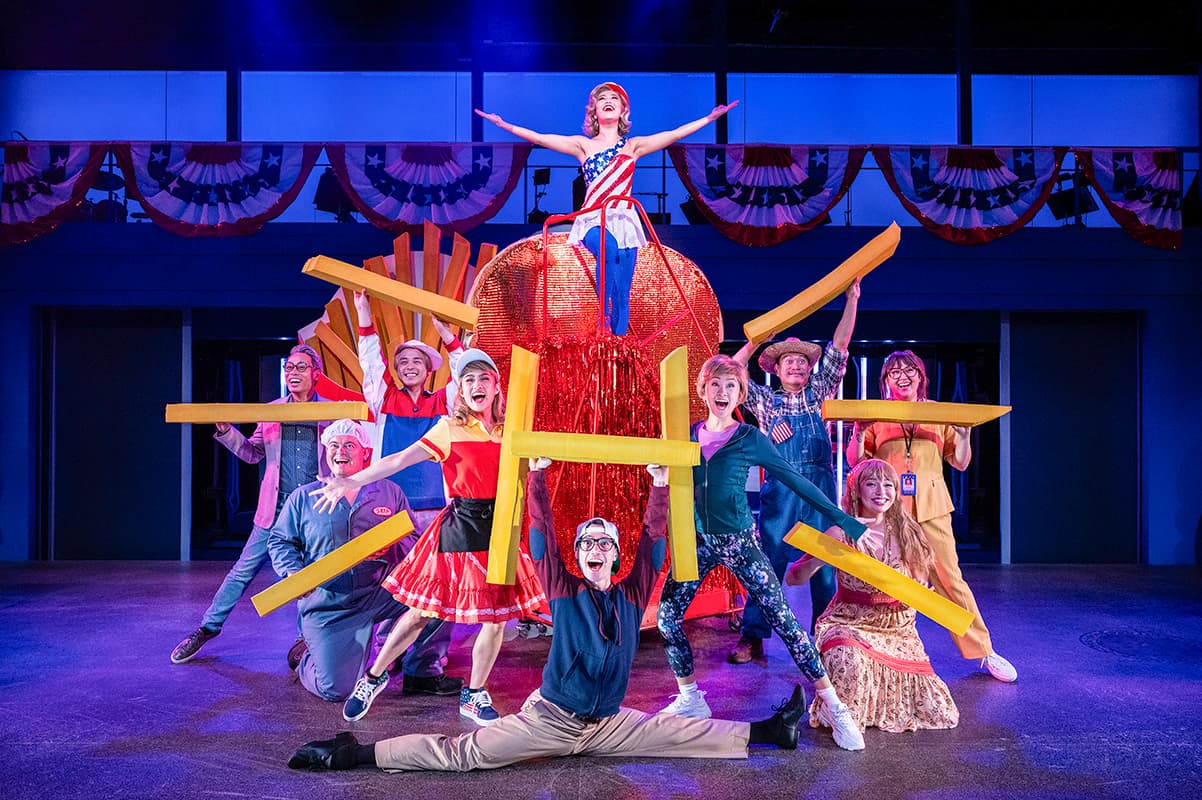 11._Grace Yoo (Hillary Clinton, center) and the cast of Soft Power at Signature Theatre. Photo by Daniel Rader